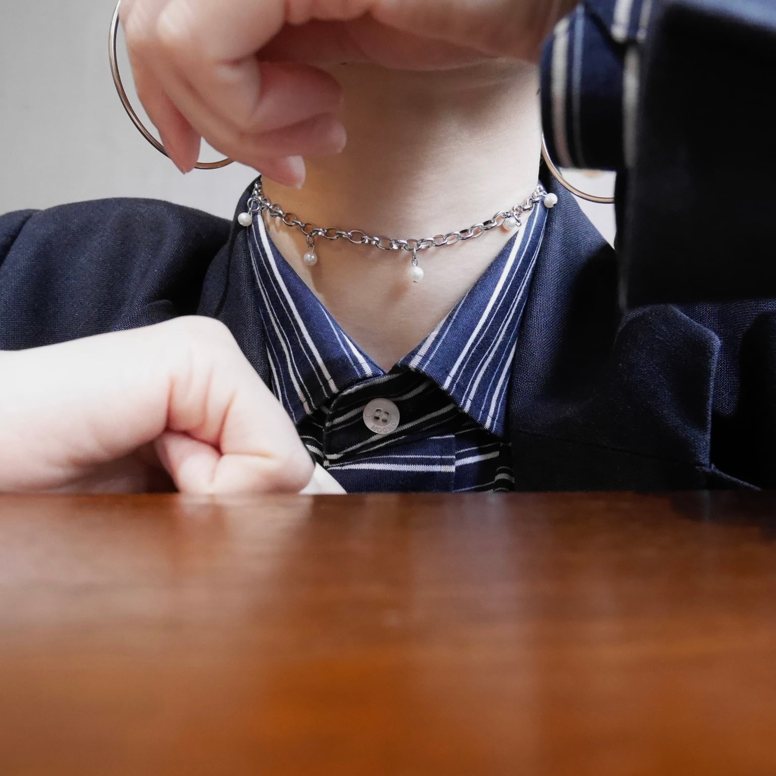 size:全長約42cm(使用しているチェーンの輪っかが大きいので止める場所で、長さは自由に変えられます。)