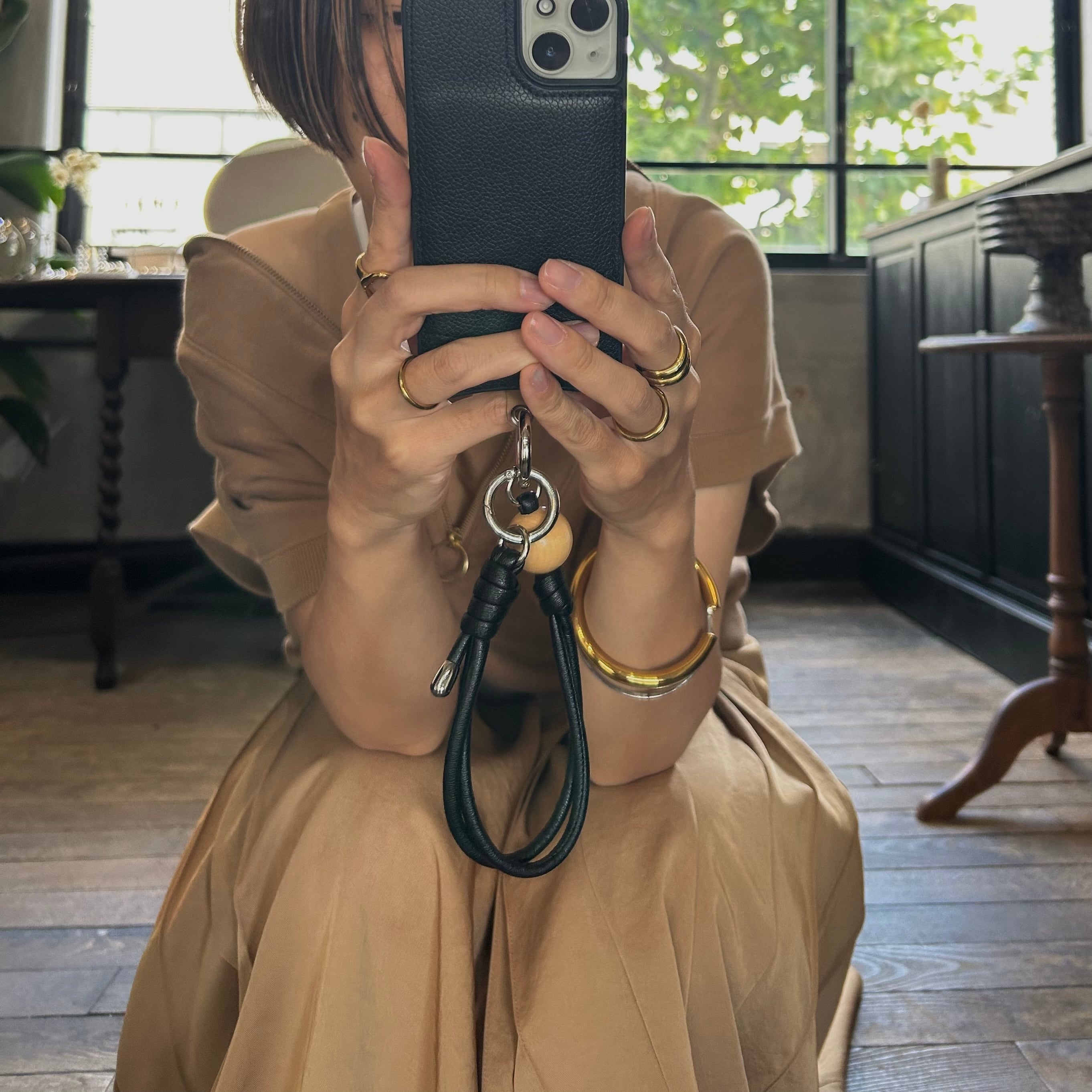 hand strap:ウッド(M)× 1 ナチュラル / ブラック