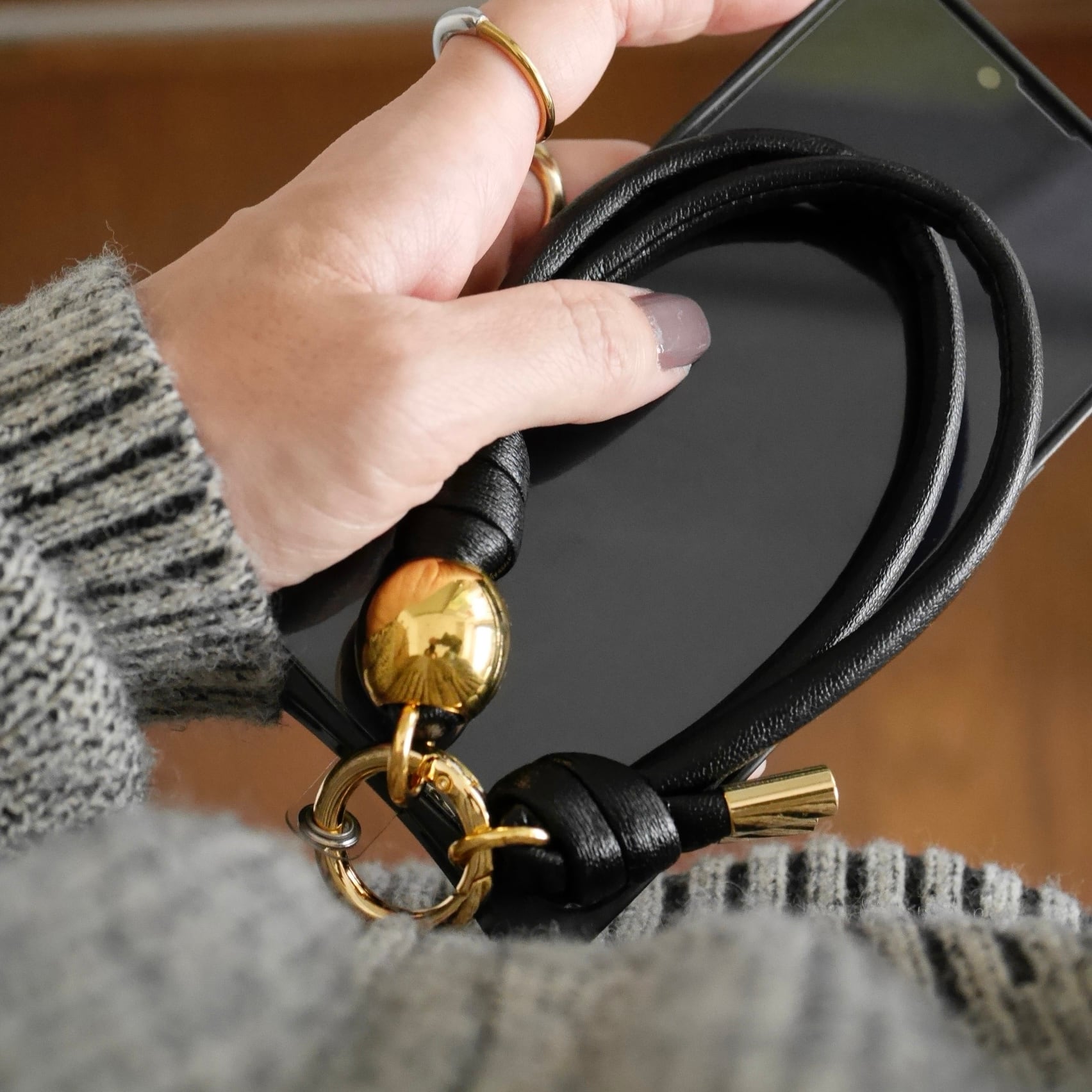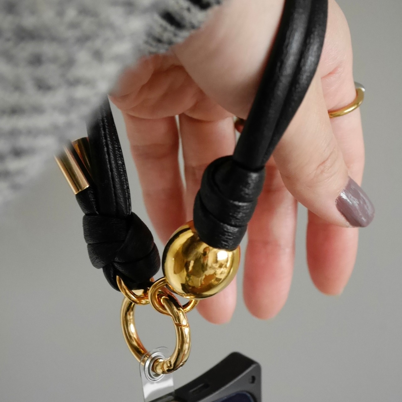 hand strap:S oval gold / ブラック