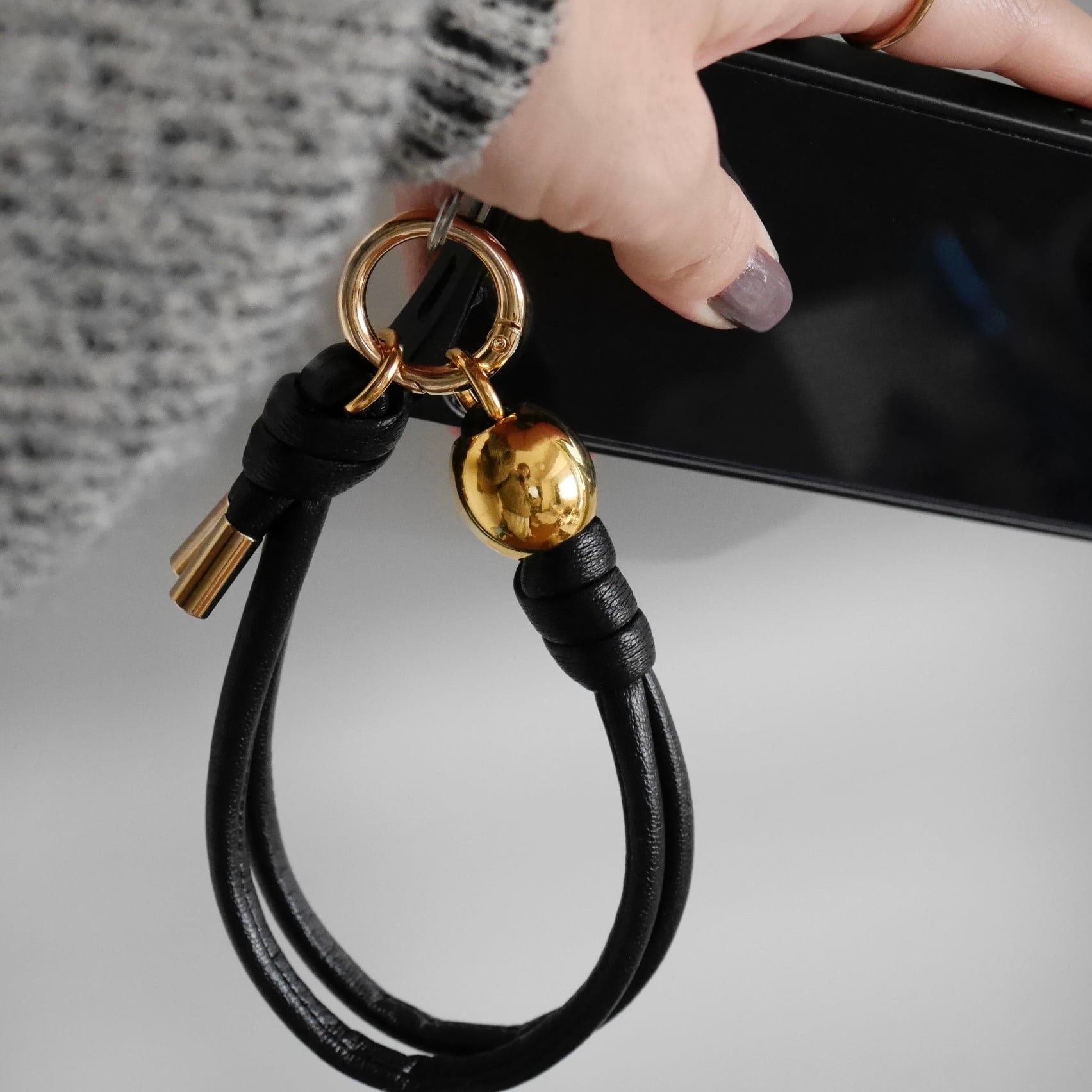 【アウトレット】 hand strap:S oval gold / ブラック