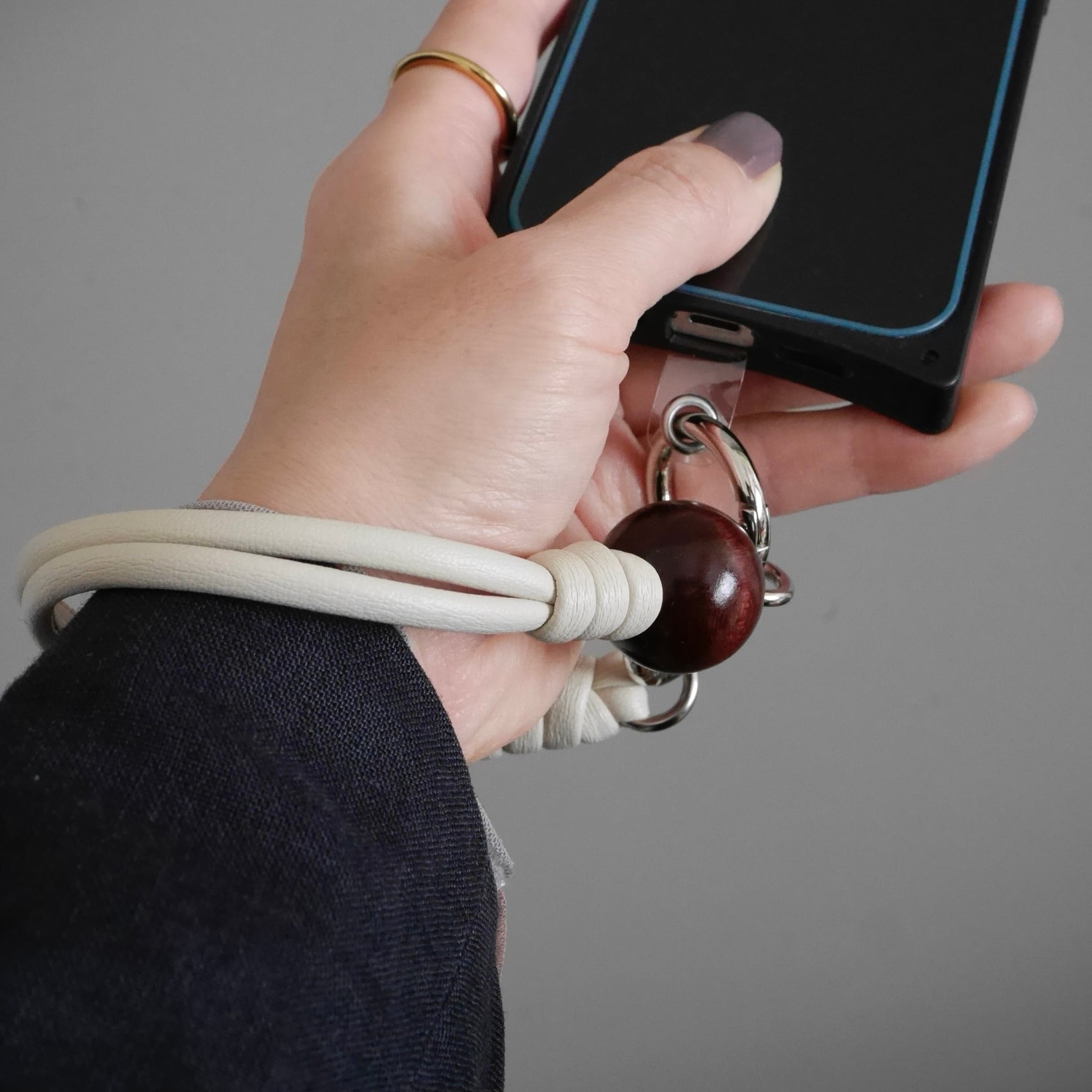 hand strap:ウッド(M)× 1 ブラウン / アイボリー