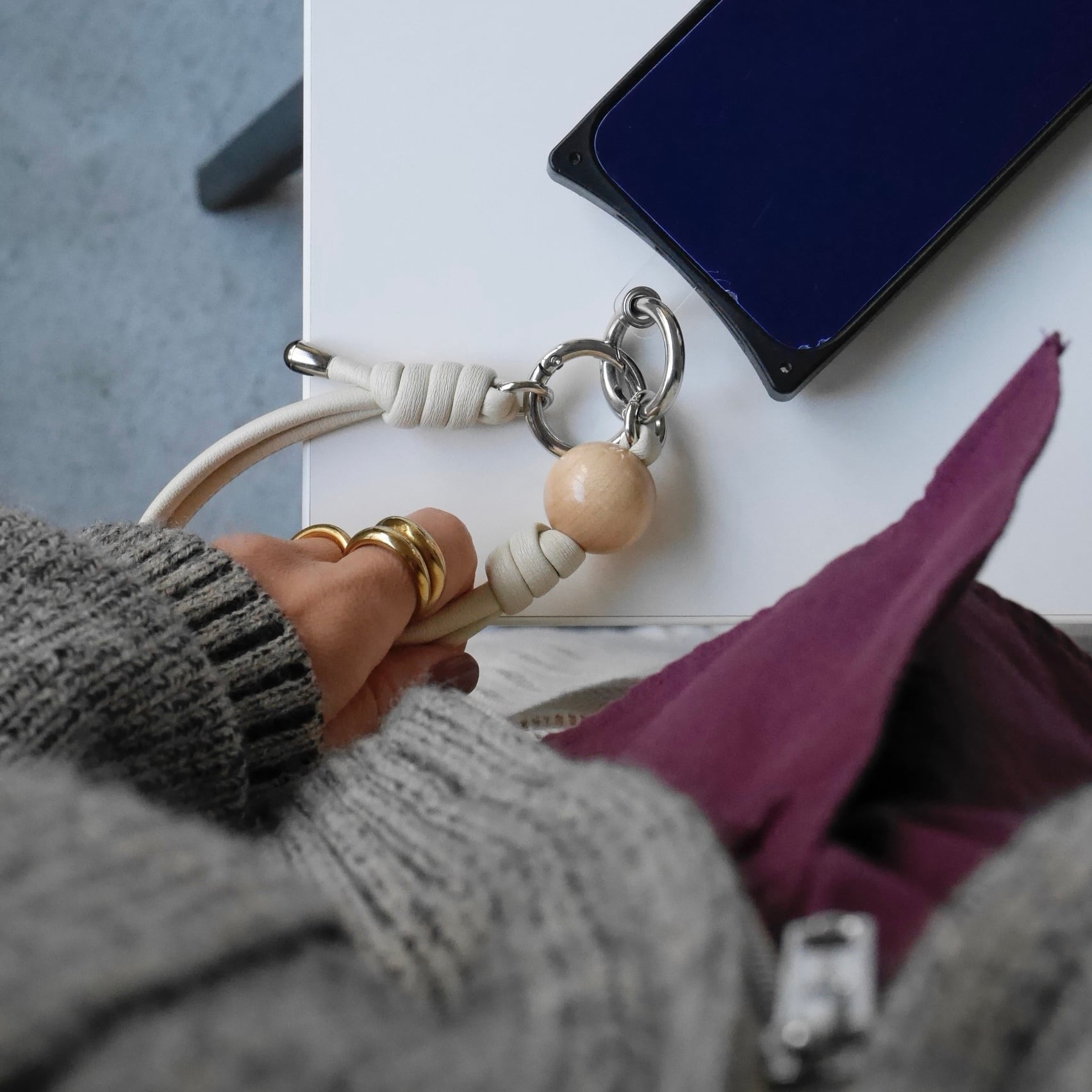 hand strap:ウッド(M)× 1 ナチュラル / アイボリー